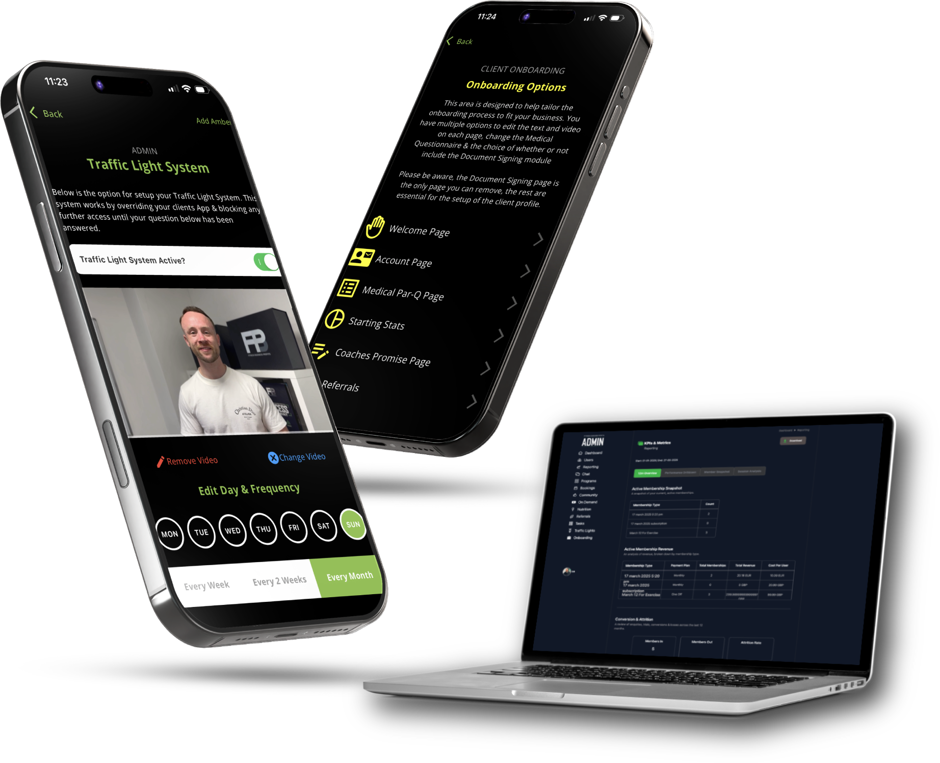 Many more features including; On-Demand Videos, Customisable Onboarding, Document Signing, Medical Par-Q, Advanced Health Check, Client Referrals & Much More...