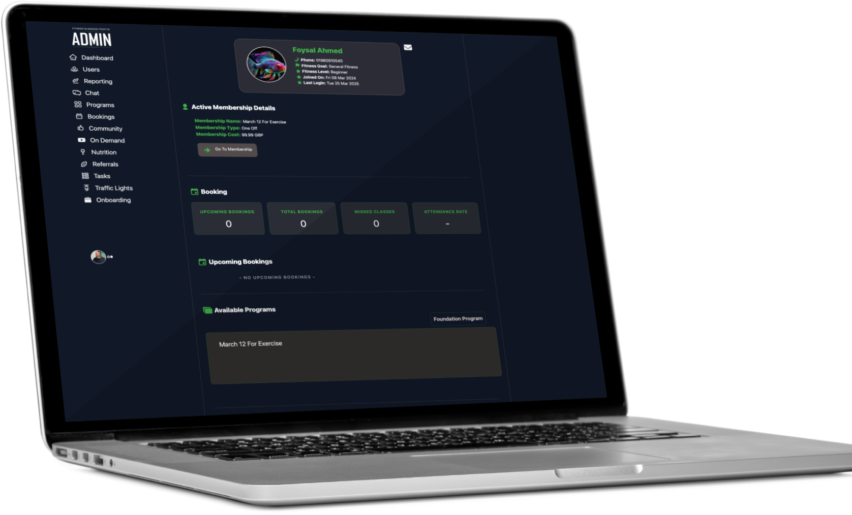 Your tool kit to keep track of your Members with intuative controls to setup Memberships, Payments, Assign Programs, Deliver Content, Communicate & Track Member Stats & Nutrition.